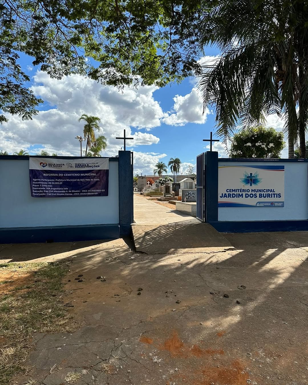Concluímos os serviços de manutenção e reforma do Cemitério Municipal de Bela Vista de Goiás, localizado no Setor São Jorge. Uma intervenção essencial que garante mais dignidade e conservação a um espaço tão importante para a cidade.